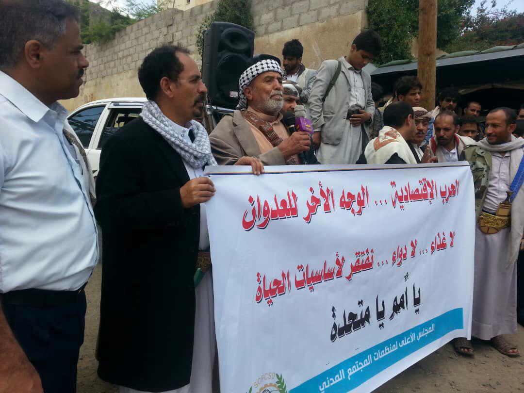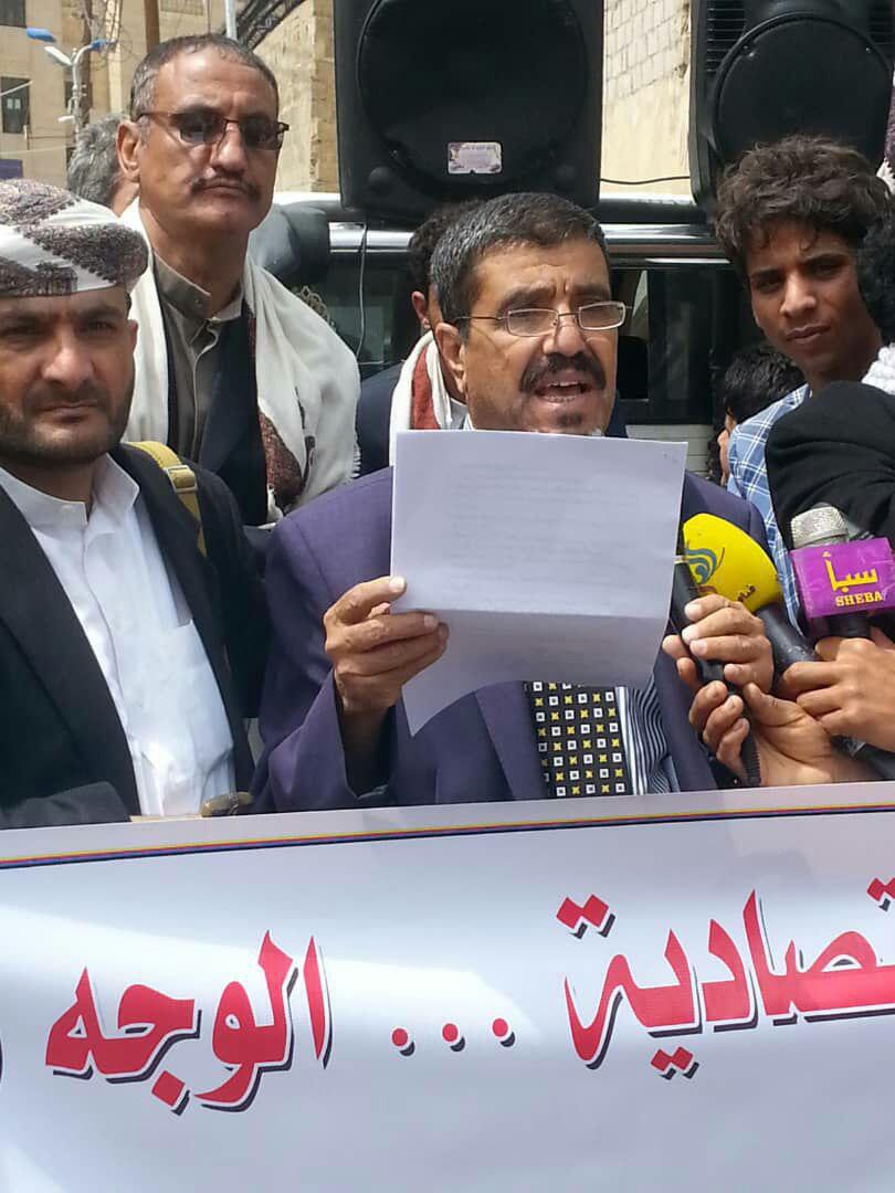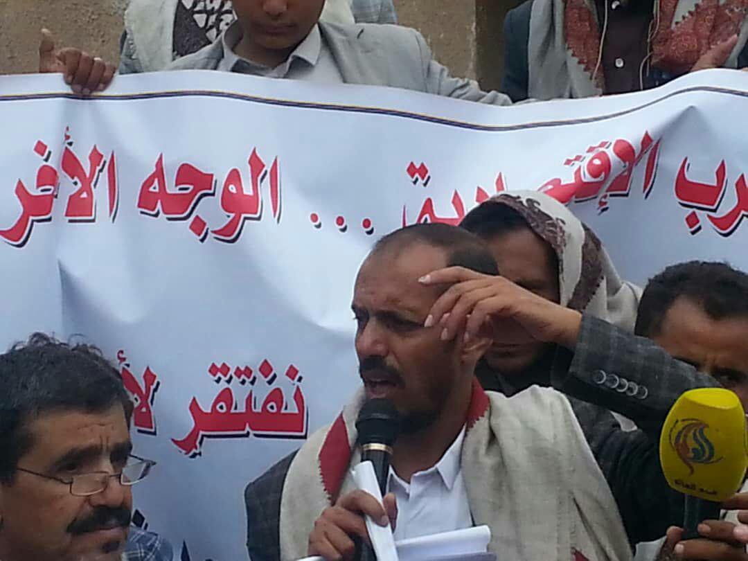 وعبر بيان الوقفة أن إحدى وسائل الحرب الاقتصادية لدول العدوان تجويع الشعب اليمني بعد فشله عسكريا وأمنيا، مؤكدين رفضهم لتلك الحرب الاقتصادية القذرة على الشعب اليمني.