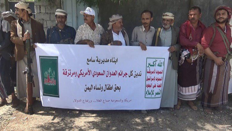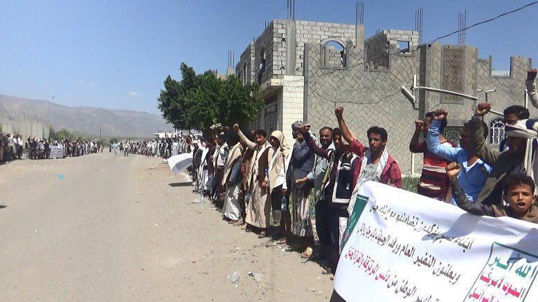 الحاضرون في الوقفة أكدوا صمودهم وثباتهم أمام همجية العدوان الأمريكي السعودي ومنافقيهم، معلنين استعدادهم الكبير لرفد جبهات القتال بالرجال والمال والعتاد وتلقين الغزاة أقسى الدروس، ودعى الحاضرون أبناء الشعب اليمني الأحرار والشرفاء إلى إعلان النفير العام والتوجه إلى ميادين العزة والكرامة للدفاع عن الوطن الأرض والعرض والسيادة الوطنية.