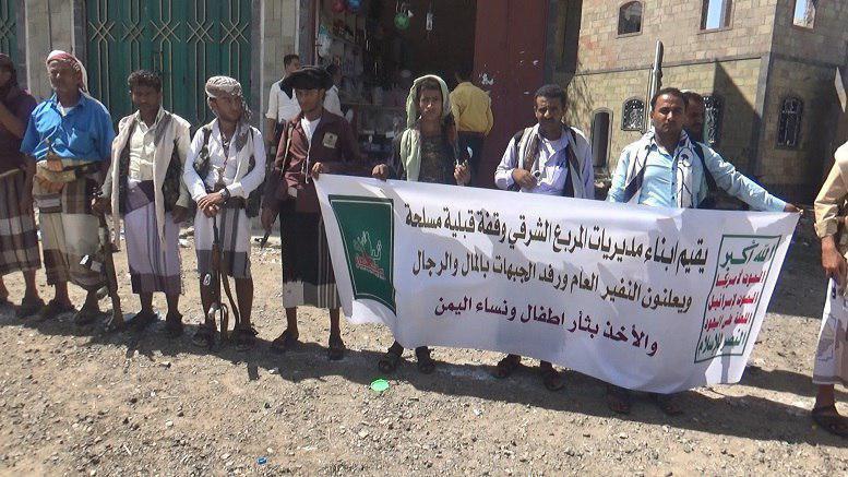 وقفة قبلية كبرى ينظمها أبناء المربع الشرقي بمحافظة #تعز إعلاناً للنفير العام وتنديداً بجرائم العدوان ومرتزقته (صور)