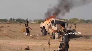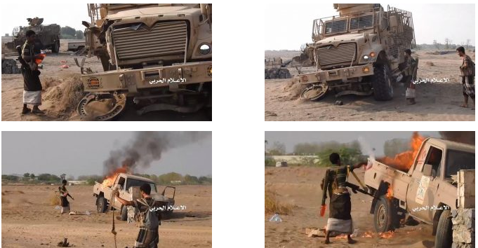 وزع الإعلام الحربي مشاهد وصور جديدة لخسائر تحالف العدوان في المعارك التي دارت يوم امس في منطقة كيلو 16 بالحديدة