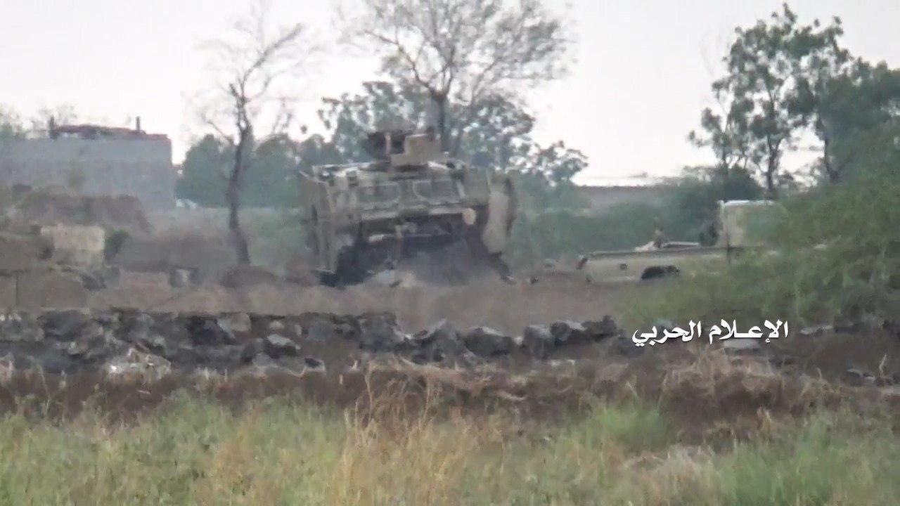 وأظهرت المشاهد، لحظة هروب أربع آليات إماراتية، من أمام ثلاثة من أبطال الجيش واللجان الشعبية، بأسلحتهم الشخصية، خلال تصديهم لمحاولات الغزاة والمرتزقة التقدم في منقطة كيلو 16.