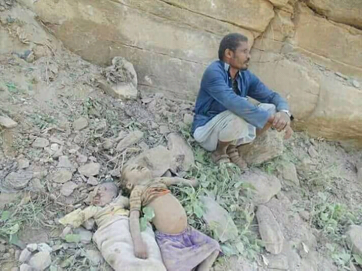في سلسلة من المجازر البشعة التي ترتكبها طائرات تحالف العدوان بحق المدنيين الأبرياء والوطن ومقدراته وبنيته التحتية، شنّت المقاتلات غارات جوية استهدفت منزل أحد المواطنين في مدينة صعدة واستشهد طفلاه وضاعت جثتهما بين الأنقاض، يأتي ذلك في سياق الجرائم والاعتداءات والانتهاكات اليومية التي يرتكبها التحالف السعودي الأمريكي بحق الشعب اليمني في مختلف المحافظات اليمنية، صورة المواطن وبجواره جثتا طفليه لاقت صدى واسعاً في معظم وسائل الإعلام وتصدرت مواقع التواصل الاجتماعي، حيث بدا الأب مصدوماً متبلد الحواس شاخصاً ببصره في الأفق البعيد، وكأنه يعاتب الطيران لماذا أبقاه حيّاً ليعيش تفاصيل هذه اللحظات، ولماذا لم يأخذ أرواح كل الأسرة كما جرت عادة قصفه واستهدافه المتواصل، مشهد يختزل مظلومية اليمن في أبلغ تفاصيله على بعد ميل من البراءة المغلفة بالموت، حيث سقط نيزك من الحزن ليمسح دمعة أب بلدته الصدمة، ثم تابع صعوده إلى السماء ومعه روحا الطفلين، تاركاً خلفه روح الأب تراوح بين الحياة وضدها.