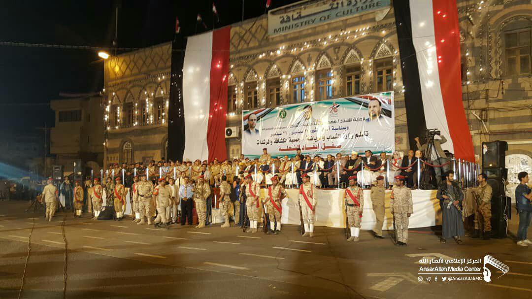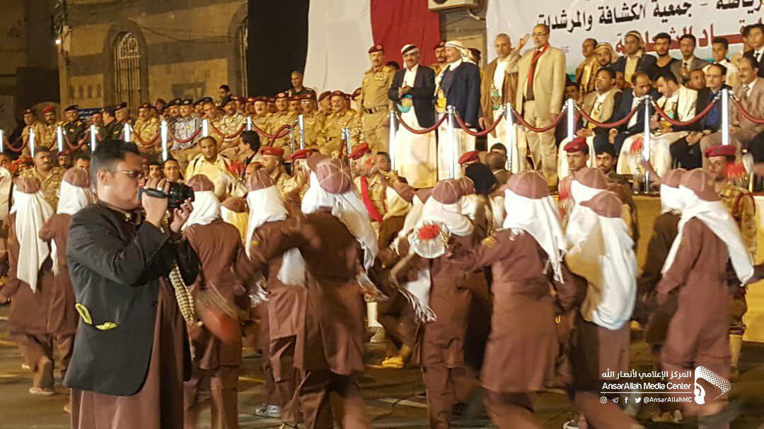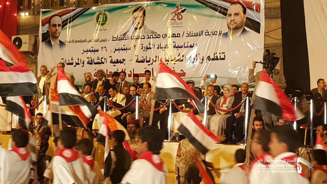 وفي الاحتفال أشار وزير الشباب والرياضة إلى أن الشعب اليمني يحتفل بهذه المناسبة وهو يمر بأصعب مرحلة جراء العدوان الذي يشنه التحالف بقيادة أمريكا والسعودية.