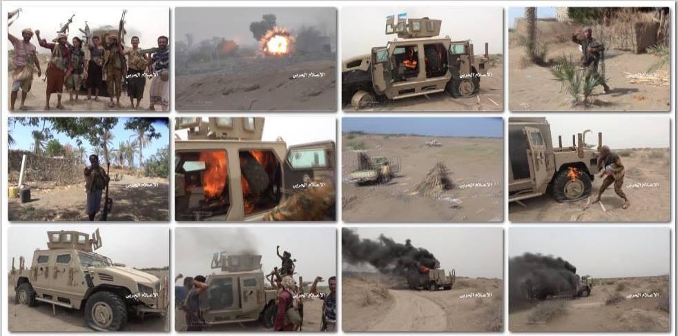 ووثقت مشاهد الإعلام الحربي الآليات العسكرية التي دمرها أبطال الجيش واللجان الشعبية والتي تنوعت بين أطقم عسكرية ومدرعات.