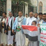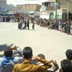 وفي ذمار، خرج عدد من أبناء المدينة في وقفة احتجاجية تنديداً بجرائم العدوان الأمريكي السعودي المتكررة يومياً وسط صمت اممي ودولي مريب.