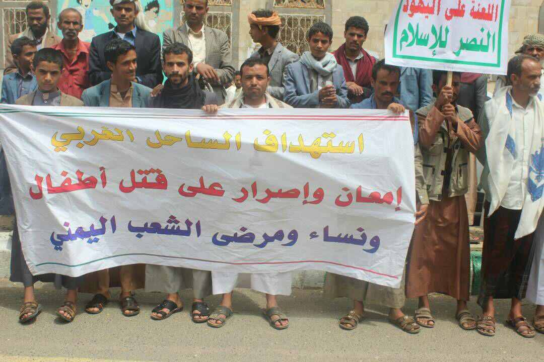 نظمت بأمانة العاصمة عقب صلاة الجمعة وقفات احتجاجية للتنديد بجرائم العدوان السعودي الأمريكي والحصار ودعماً لجبهات الساحل الغربي.
