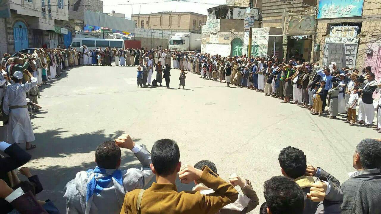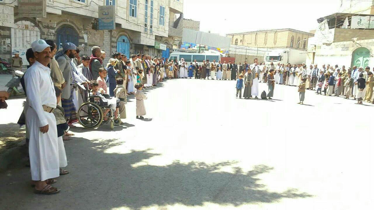 وفي ذمار، خرج عدد من أبناء المدينة في وقفة احتجاجية تنديداً بجرائم العدوان الأمريكي السعودي المتكررة يومياً وسط صمت اممي ودولي مريب.
