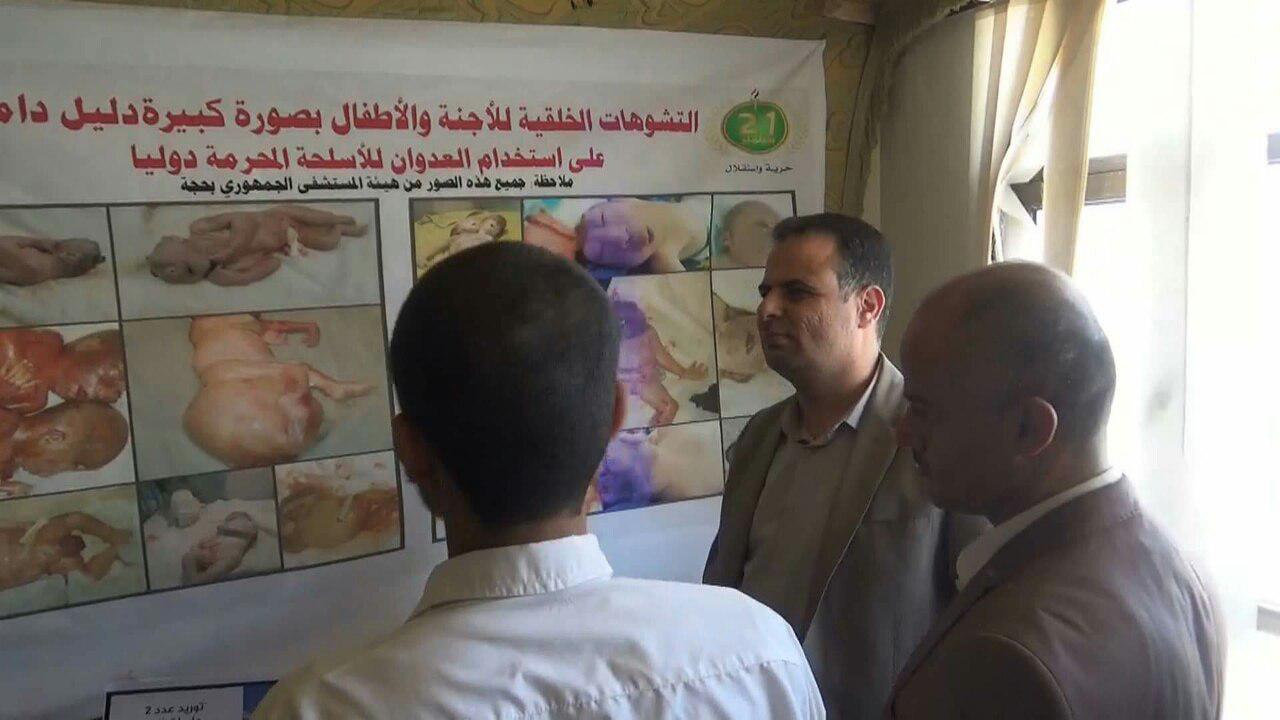 واستمع المحافظ من مدير عام مكتب الصحة إبراهيم الأشول ومدير عام مكتب الإعلام إبراهيم هاشم شرف إلى شرح حول محتويات المعرض من الصور التي عكست جرائم العدوان بحق المدنيين والأطفال والنساء, وكذا صور وبيانات لحجم الدمار الذي طال القطاع الصحي بالمحافظة والذي بلغ نحو 28 مرفقا صحيا بعموم المديريات,, إضافة إلى الإنجازات التي حققها القطاع الصحي في المحافظة رغم العدوان والحصار .