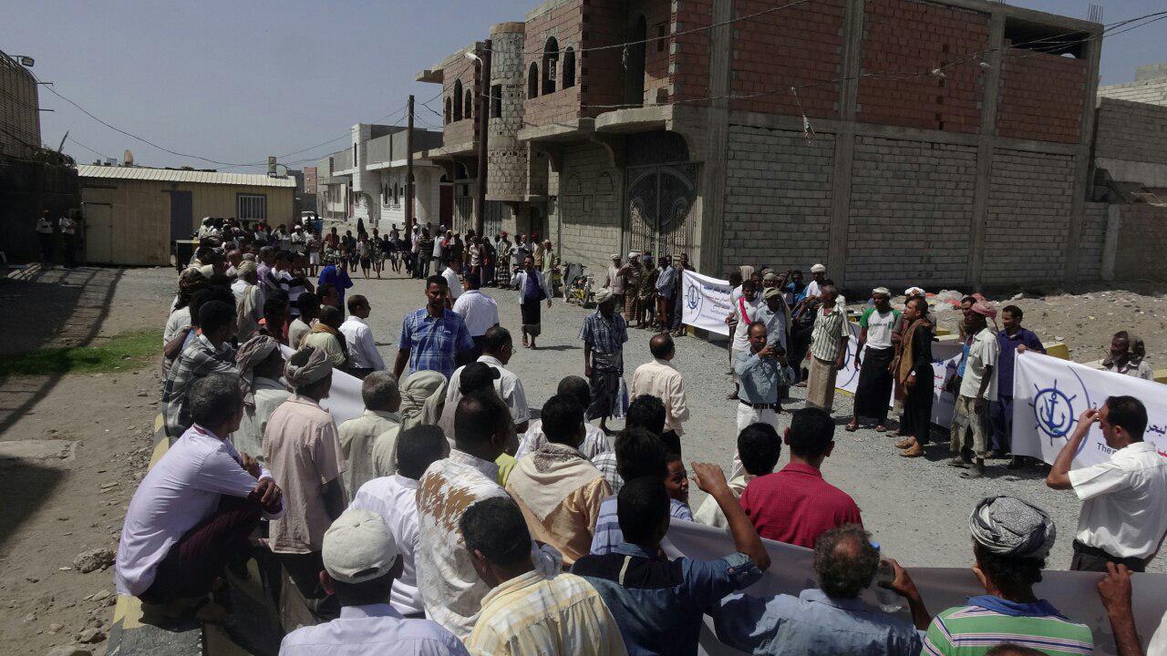 وقفة إحتجاجية لعمال وموظفي ميناء الحديدة أمام مبنى مكتب الأمم المتحدة.. (صور)