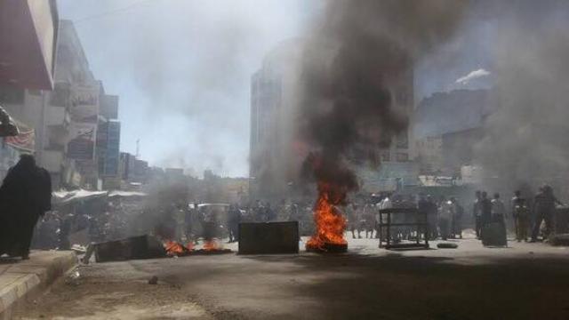 المحتجون ، أغلقوا عدد من شوارع مدينة تعز، وأحرقوا إطارات السيارات، فيما غالبية المحلات التجارية أغلقت أبوابها إحتجاجاً على ارتفاع الأسعار وسوء المعيشة.