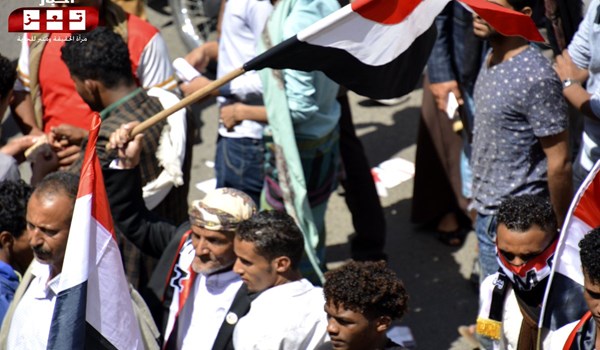 وردد آلاف المتظاهرين شعارات منددة بحكومة هادي وتحالف العدوان السعودي الاماراتي محملينه المسؤولية عن تردي الاوضاع الاقتصادية في البلاد.
