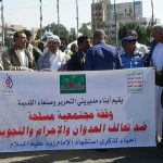 إلى ذلك أكد المشاركون في الوقفة الاحتجاجية التي نظمتها مديريتي التحرير وصنعاء القديمة، على استمرار مواجهة العدوان ومرتزقته ورفد الجبهات بالرجال والعتاد وتسيير قوافل الدعم.