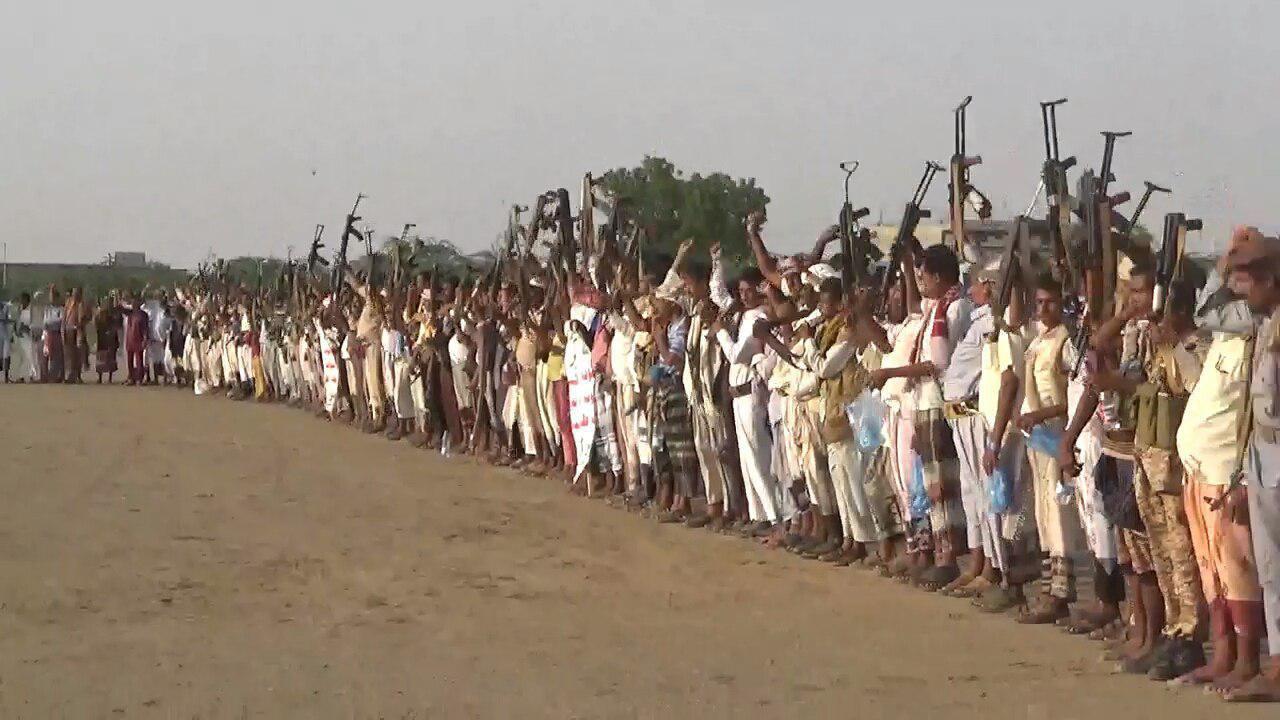 الحديدة.. وقفة قبلية مسلحة لأبناء مديرية الزهرة تنديداً بالحصار والحرب الإقتصادية وإعلان النفير إلى جبهة الساحل الغربي (صور)