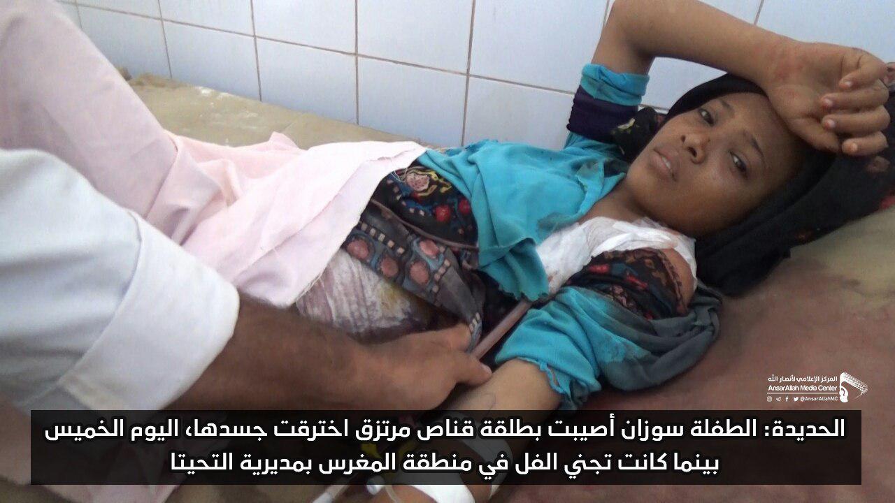 *الطفلة سوزان أصيبت بطلقة قناص مرتزق اخترقت جسدها، اليوم الخميس، بينما كانت تجني الفل في منطقة المغرس بمديرية التحيتا