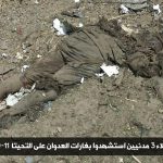 *صور جثث وأشلاء 3 شهداء استشهدوا إثر غارات شنتها طائرات العدوان على مديرية التحيتا صباح اليوم بينما الشهيد الرابع جرح في قدمه بشظية إلا أن استمرار التحليق لم يتمكن المسعفين من إنقاذه ونزف حتى الموت
