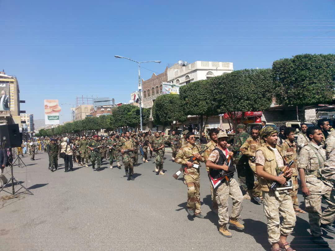 وتضمن المهرجان الذي حضره نائب رئيس مجلس الوزراء لشئون الخدمات محمود الجنيد ووزير الكهرباء المهندس لطف الجرموزي ووكيل الأمانة لقطاع الخدمات علي السقاف والوكيل المساعد للأمانة ناجي القوسي، عرض لوحدات رمزية لعدد من منتسبي الوحدات الأمنية في الجيش واللجان الشعبية عكست مدى جاهزيتهم للالتحاق بجبهات القتال.
