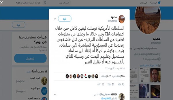 ومن جهة المواقف الدولية قال مجتهد ان السلطات الأمريكية توصلت ليقين كامل من خلال اعتراض الاستخبارات الاميركية لمحادثات المسؤولين السعوديين ومن خلال ما وصلها من معلومات قطعية من السلطات التركية عن قتل خاشقجي وتحديدا عن المسؤولية المباشرة لابن سلمان، مؤكدا ان ترامب وكوشنر أدركا أن إنقاذ ابن سلمان مستحيل وعليهم البحث عن وسيلة للنأي بأنفسهم عنه أو تقليل الضرر.