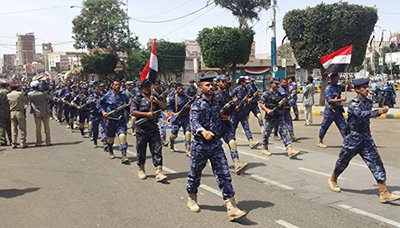 نظم أبناء مديرية التحرير بأمانة العاصمة اليوم فعالية وعرض رمزي لوحدات أمنية ضمن حملة الحشد والتعبئة لرفد الجبهات.