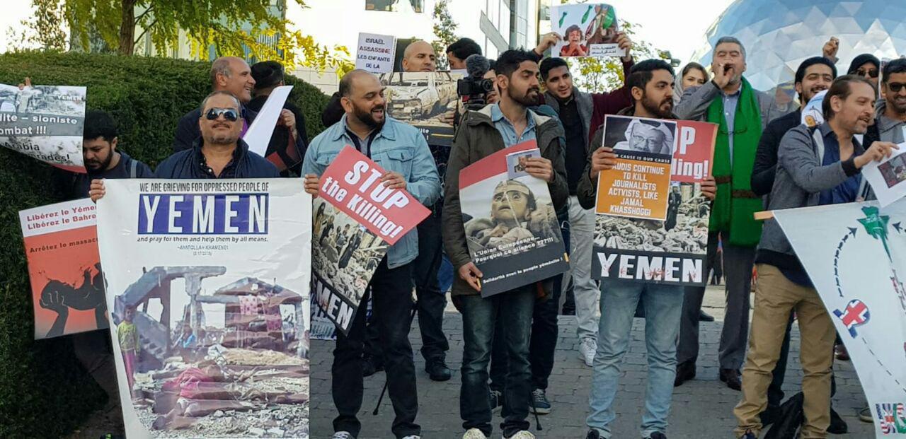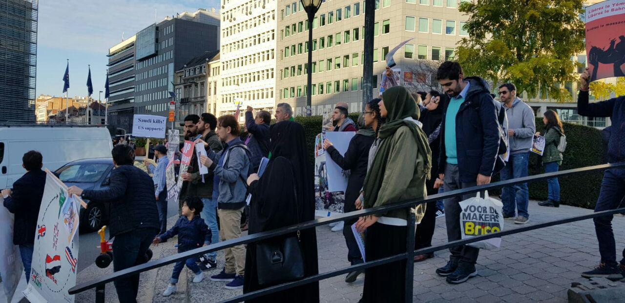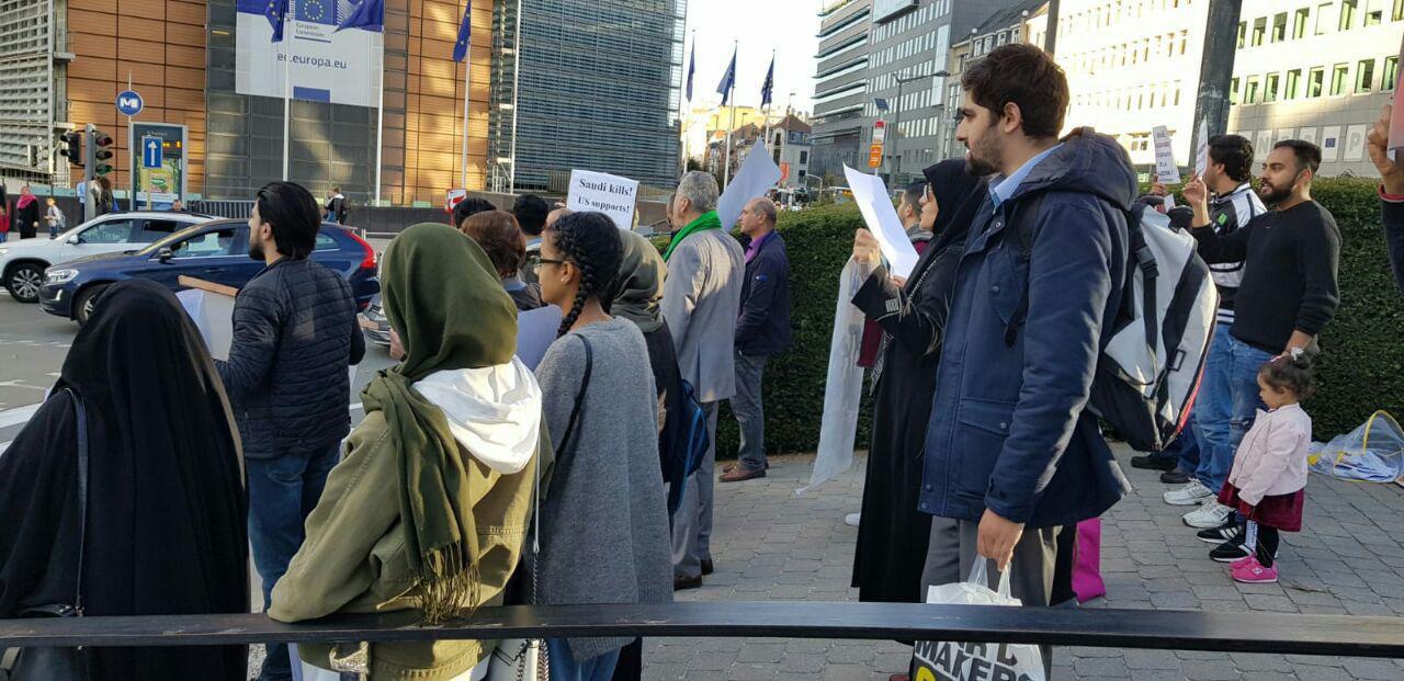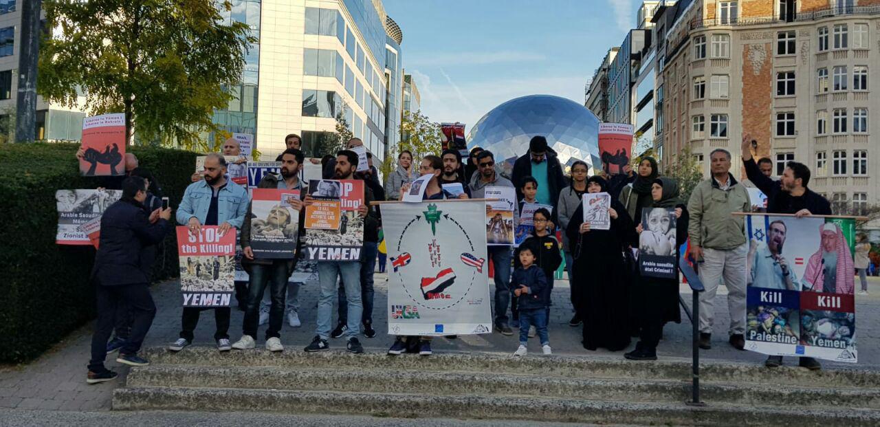 وقفة احتجاجية أمام مقر الاتحاد الأوروبي في بروكسل تنديداً بالعدوان على اليمن + (صور)