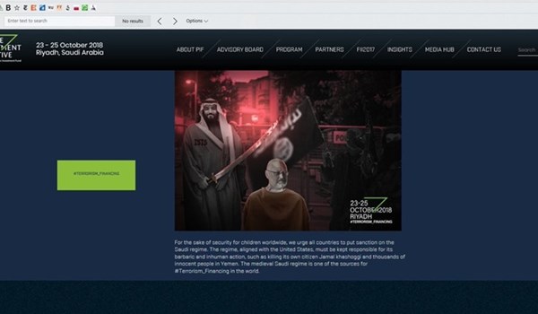 تعرض موقع منتدى الاستثمار السعودي “دافوس في الصحراء” للاختراق مساء الاثنين ونشر المخترقون صورا تتهم ولي العهد السعودي بممارسة القتل والإرهاب.