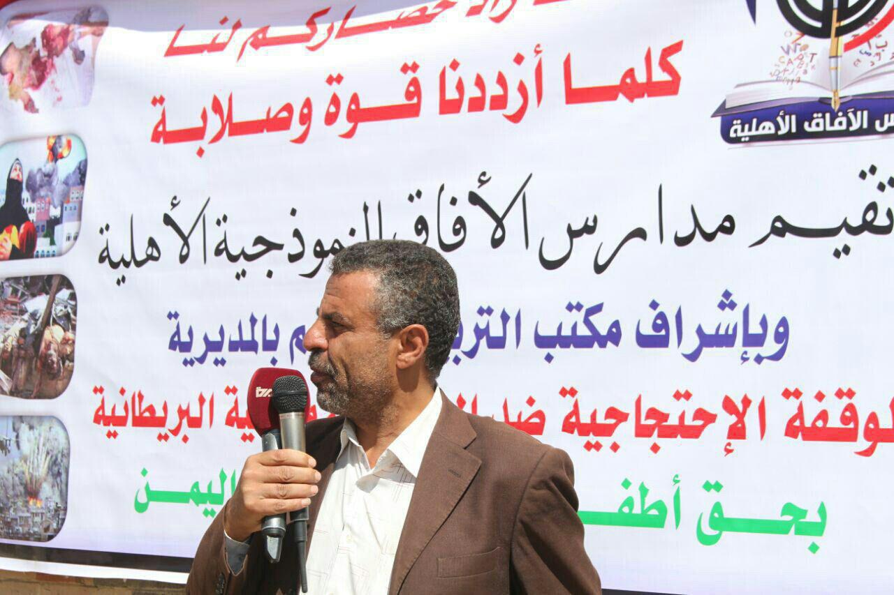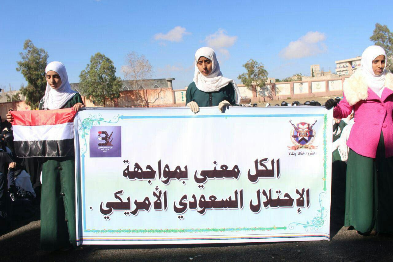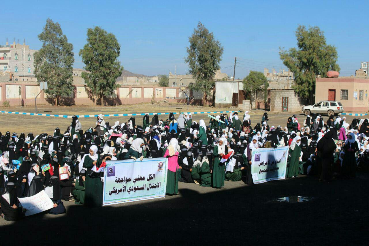 أقام طلاب وطالبات مدرسة أسماء ومدرسة الآفاق بمدينة ذمار وقفتين احتجاجيتين منفصلتين، أكد فيهما الطلاب والطالبات والمعلمون على مواصلة العملية التعليمية مهما أمعن العدوان في جرائمه ومجازره ومؤامراته وحربه الاقتصادية لتعطيل الدراسة وتجهيل الأجيال.