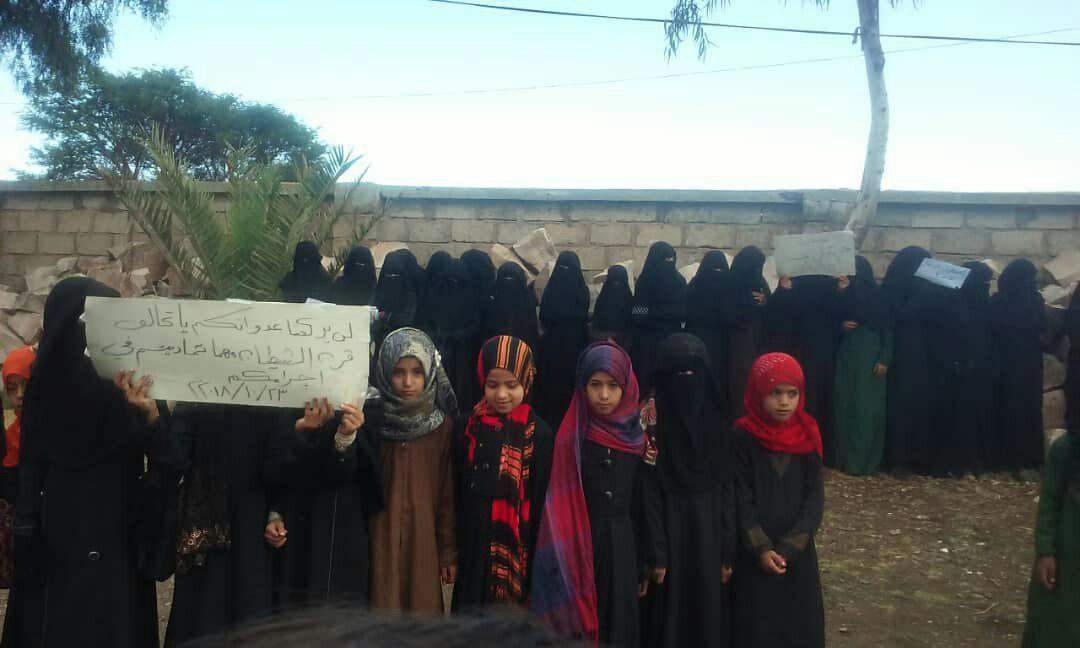 وخلال الوقفتين رُفعت لافتات وعبارات الاستنكار ضد تحالف مملكة الانبطاح.