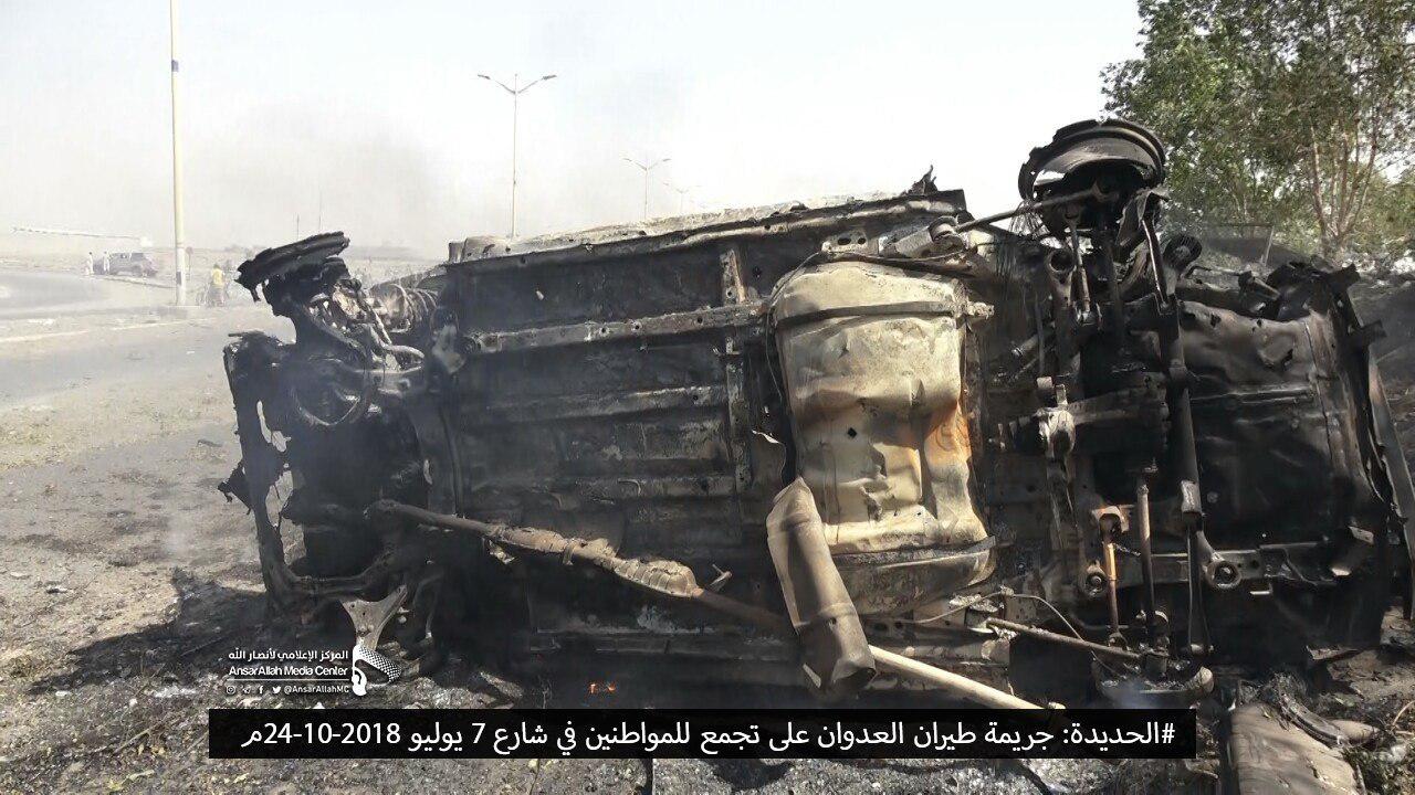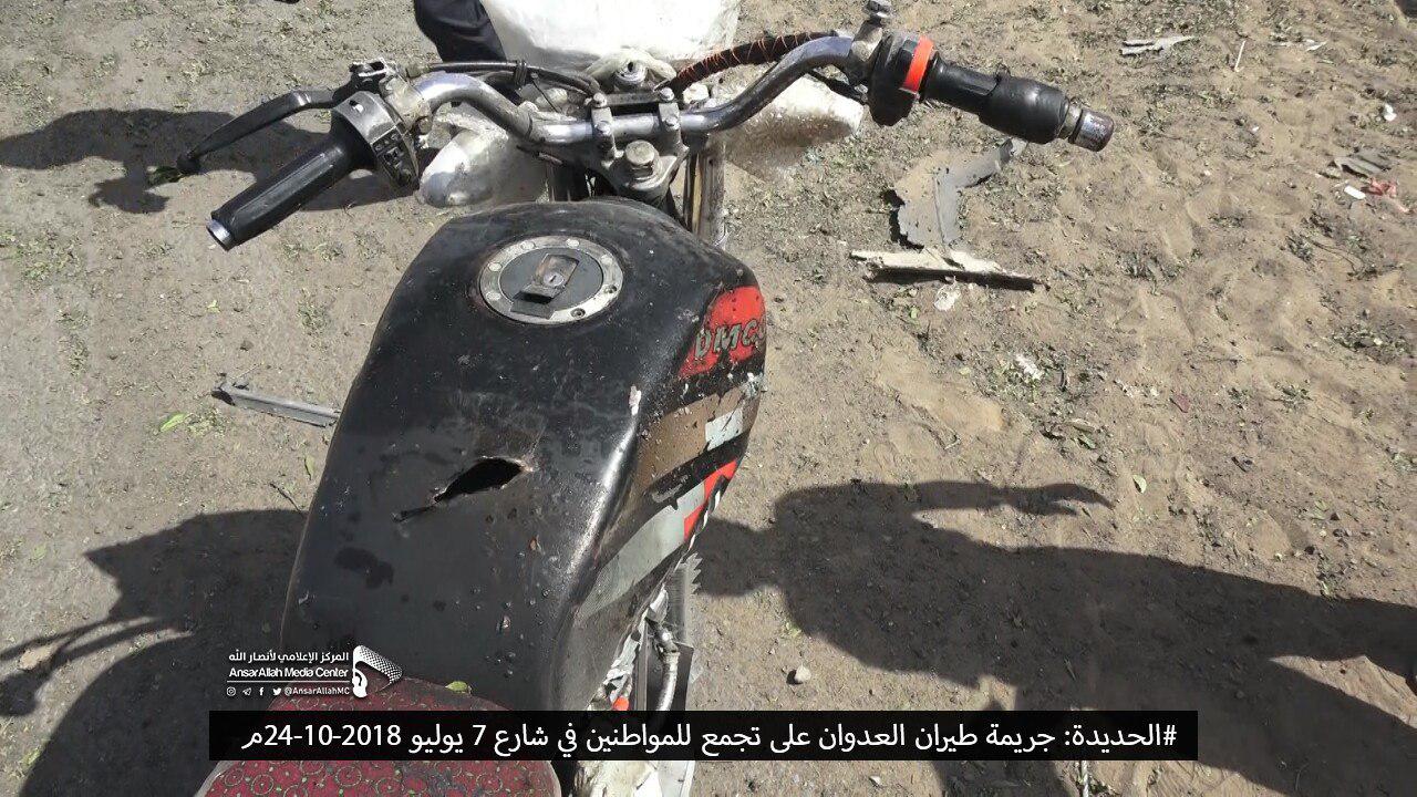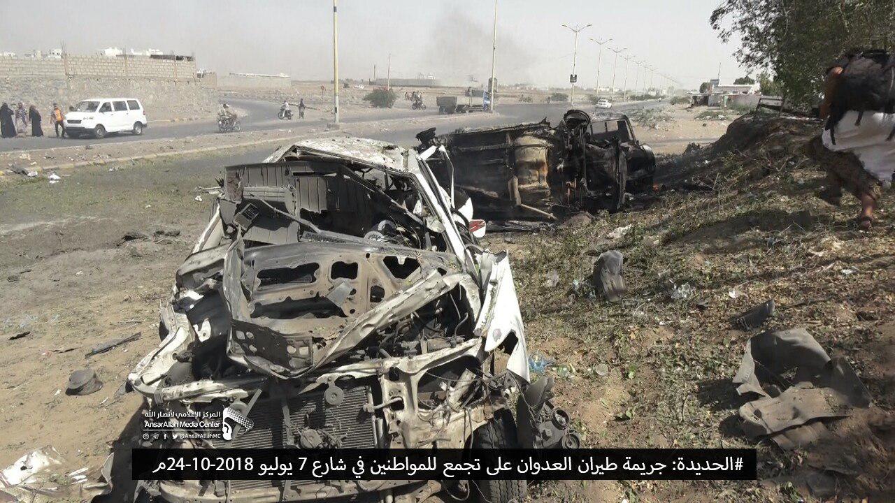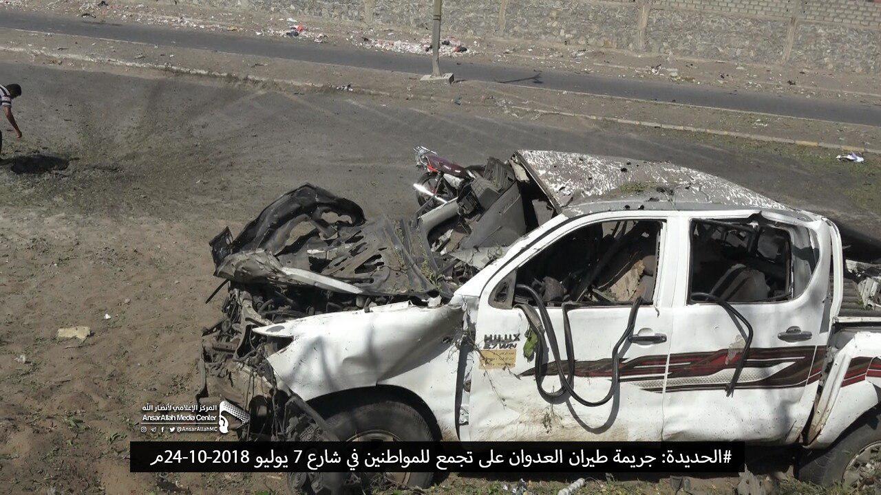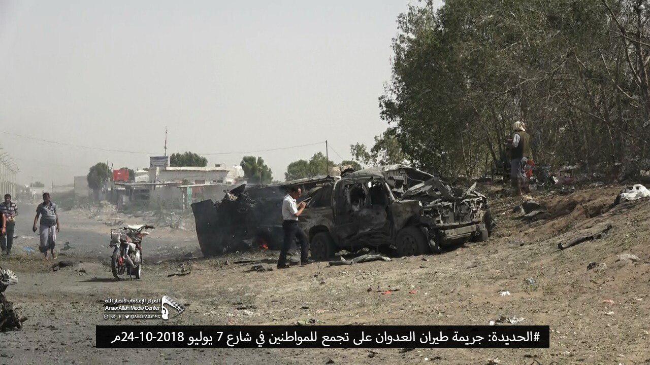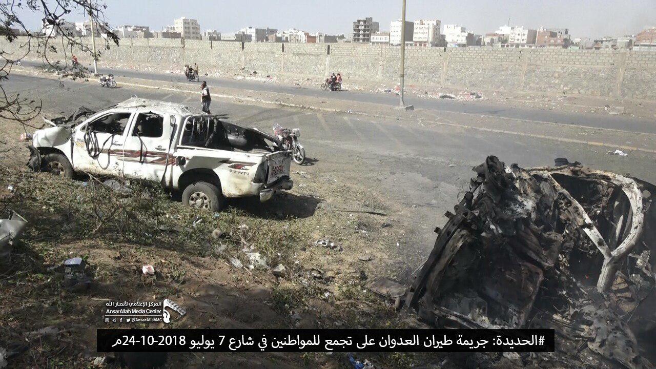 وكان خمسة مدنيين استشهدوا وأصيبوا مساء يوم السبت، إثر غارة جوية شنها طيران العدوان على شارع زايد بمديرية الحالي وسط مدينة الحديدة خلفت شهيد وأربعة جرحى في صفوف المدنيين