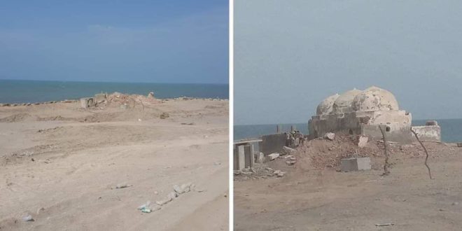 أكمل “دواعش” الإمارات عملية هدم جامع وضريح الشيخ الصفي الكبير أحمد الفازة في الساحل الغربي الذي يعود على القرن السابع الهجري بعد أن كانوا قبل أربعة أشهر قد عملوا على هدمه جزئياً ونبش ضريحه الشريف.
