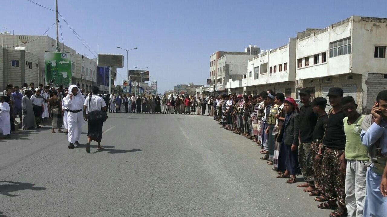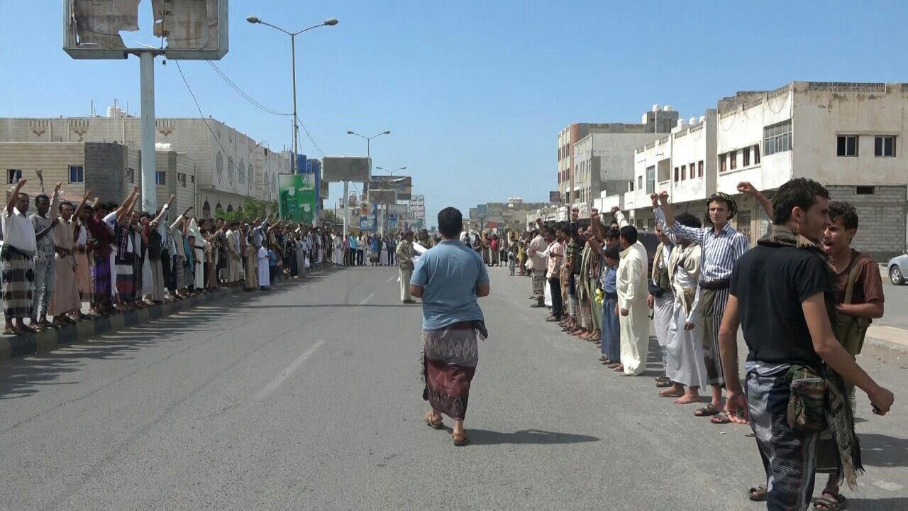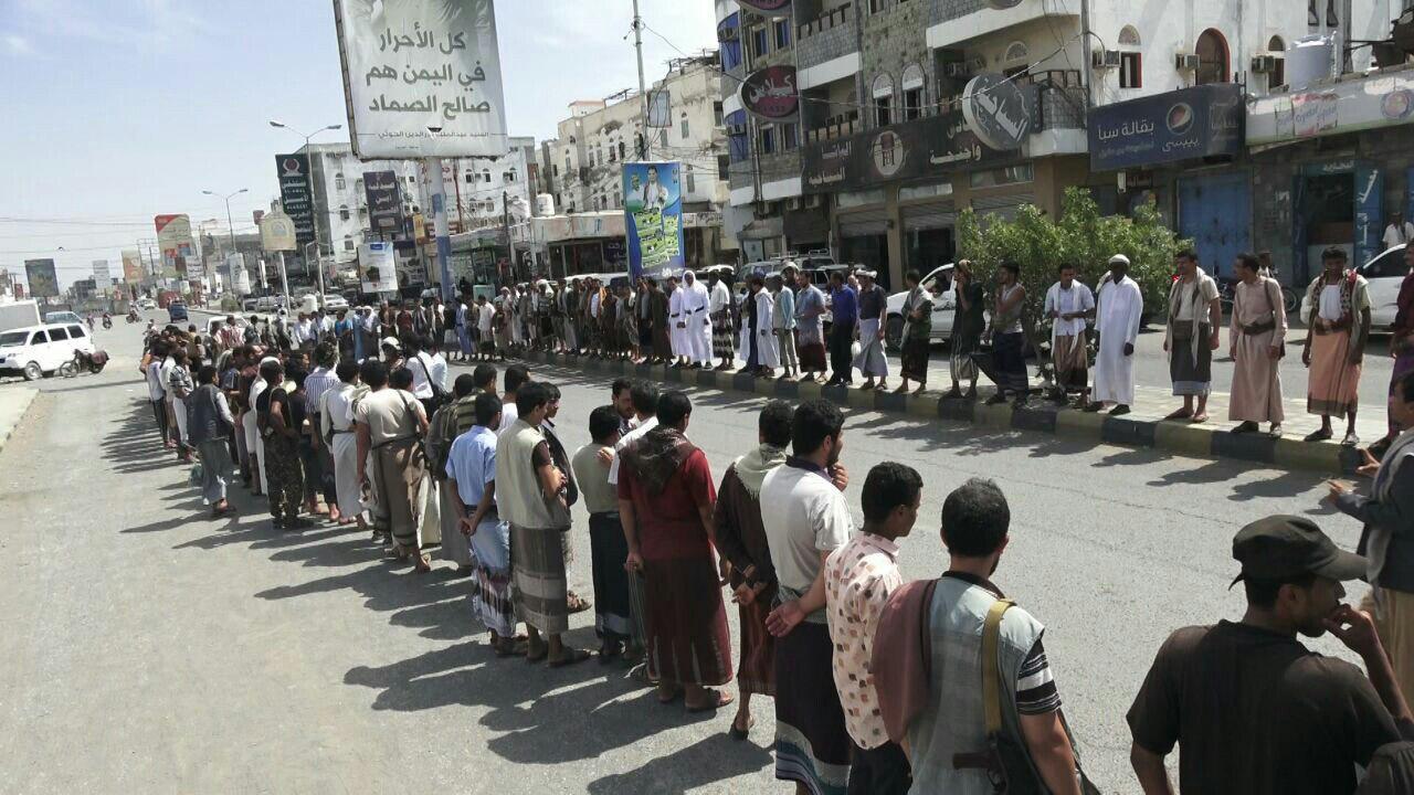 نظم ابناء مدينة الحديدة، اليوم الجمعة، وقفة احتجاجيه غاضبه عقب صلاة الجمعه جوار جامع العيسي تنديدا باستمرار العدوان وما يرتكبه من ابشع الجرائم في حق ابناء الشعب اليمني ويقتل الاطفال والنساء بدم بارد ويستهدف المنشئات والبنية التحتية