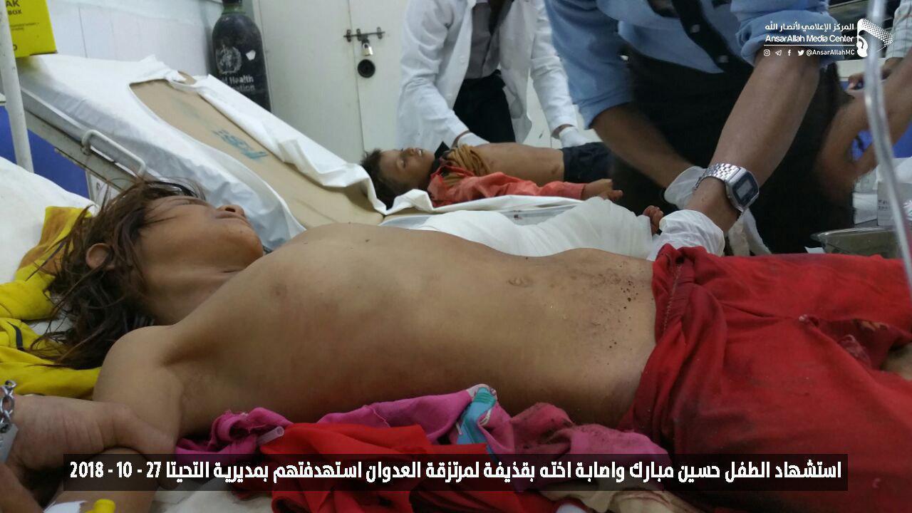 الحديدة.. قذائف المرتزقة العشوائية تودي بحياة طفل وتصيب شقيقته بجروح خطيرة في التحيتا (أسماء+صور)