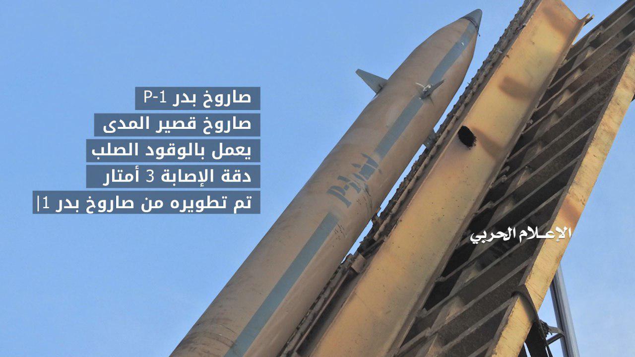 وكانت وحدة القوة الصاروخية للجيش واللجان الشعبية قد أعلنت يوم أمس عن صاروخ باليستي قصير المدي من الجيل الذكي باسم بدر P-1 بعد نجاح عدة تجارب كان آخرها على معسكر مستحدث للغزاة السودانيين في الساحل الغربي.