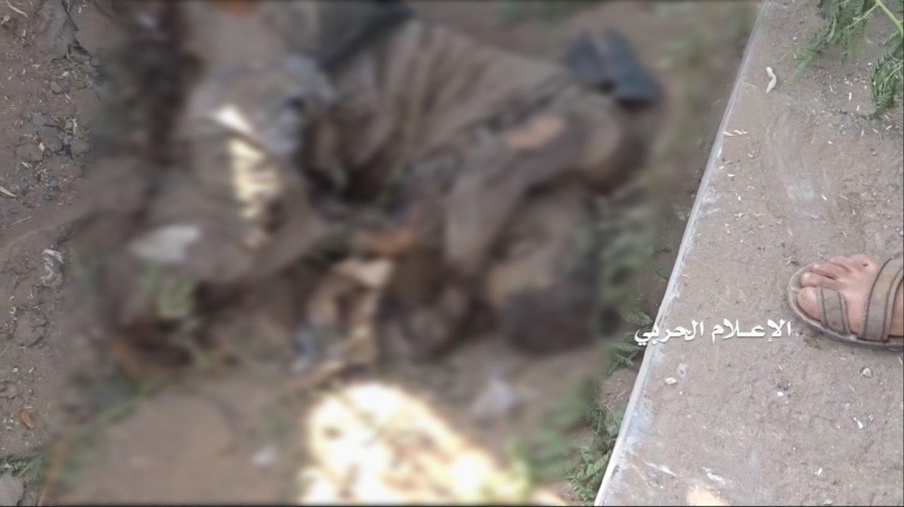 وبعد فرار من تبقى من المرتزقة وترك جثث قتلاهم في ساحة المواجه، وثقت المشاهد جثث عدد من منهم لقوا مصارعهم أثناء المواجه.