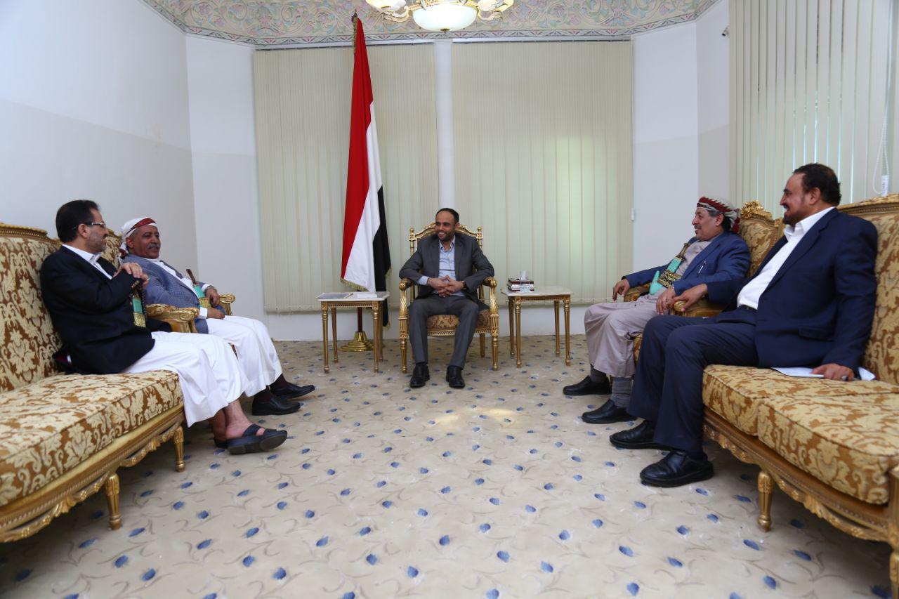 حيث التقى الرئيس المشاط، رئيس مجلس النواب الشيخ يحيى علي الراعي ونائب رئيس المجلس عبد السلام هشول ومعهم ووزير الإدارة المحلية علي القيسي وأمين العاصمة حمود عباد لـ بحث المتصلة بالتنسيق بين السلطة التشريعية والسلطة التنفيذية لتحسين مستوى الأداء والخدمات لتخفيف معاناة المواطنين جراء العدوان والحصار.