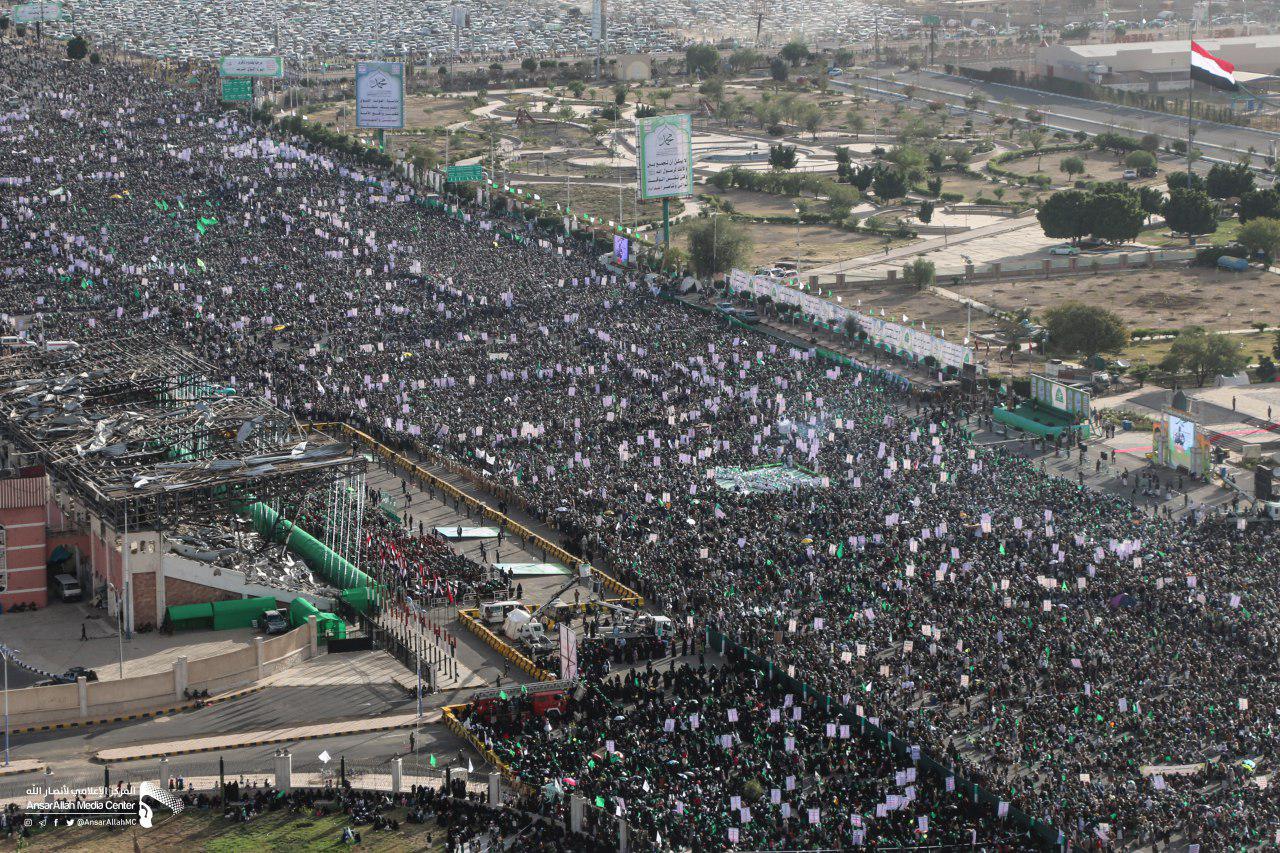 شاهد.. حشود مليونية هي الأكبر في العالم الإسلامي تحيي ذكرى المولد النبوي الشريف بالعاصمة صنعاء (صور)