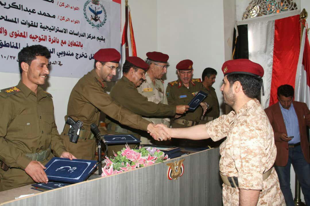 اختتمت اليوم بصنعاء فعاليات الدورة التخصصية لمندوبي البحوث والدراسات في القوى والمناطق والتشكيلات العسكرية التي نظمها مركز الدراسات الاستراتيجية بالتعاون مع مركز التخطيط العملياتي ودائرة التوجيه المعنوي لمدة أسبوعين.