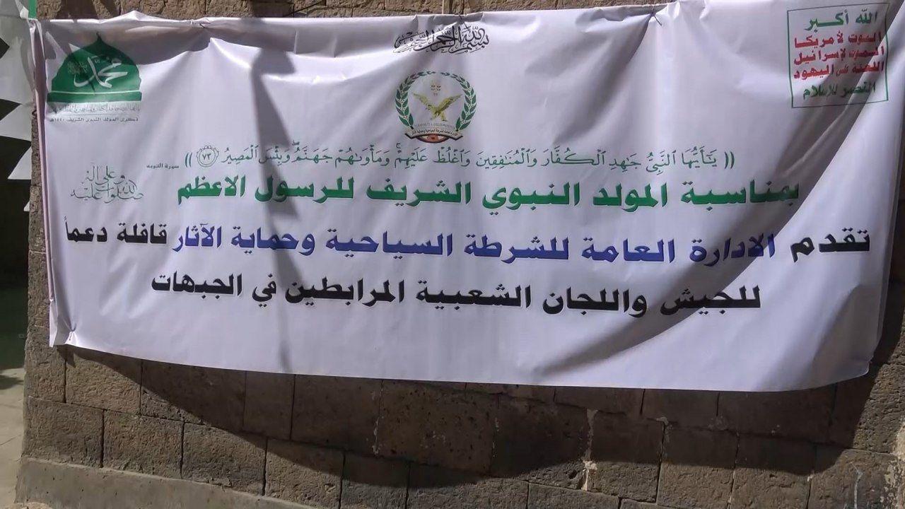 و من جانبه اشار كل من العقيد الركن عبد الكريم الحاظري ، والعقيد نبيل عنقاد نائبا مدير عام الشرطة السياحية ، أن منتسبي الشرطة السياحية يحتفلون بالمولد النبوي عبر تقديم الدعم للمجاهدين و اسرهم ، و أنهم على استعداد تام للمشاركة فى الدفاع عن الوطن و كرامته و الإلتحاق بجبهات القتال .
