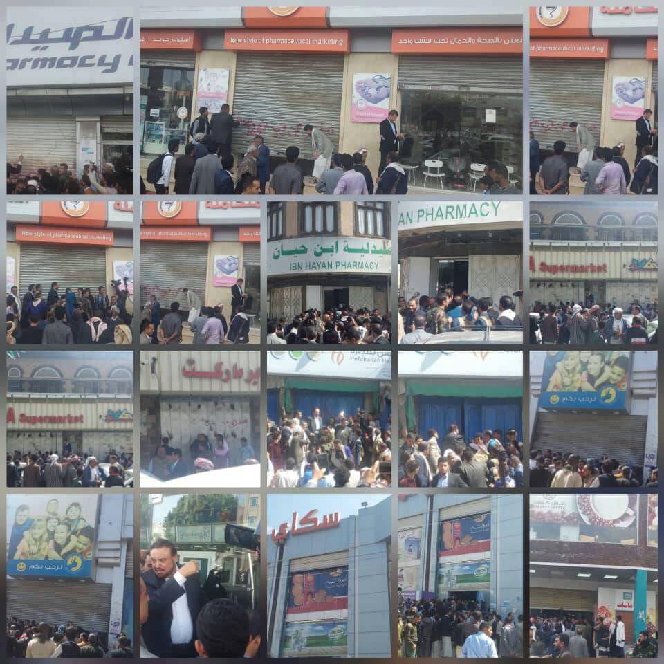 شاهد.. إغلاق مولات تجارية كبيرة وصيدليات مخالفة للتسعيرة المحددة بـ#صنعاء واللجنة الرقابية تحذر المحلات الغير ملتزمة بالإجراءات الصارمة