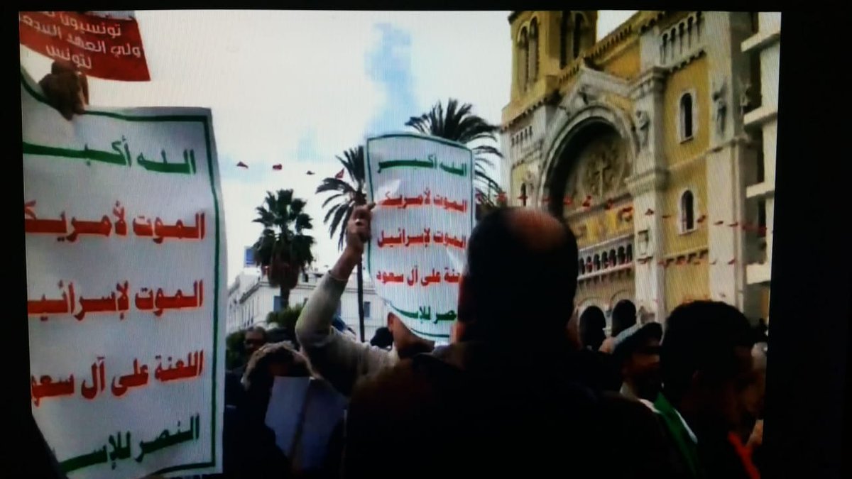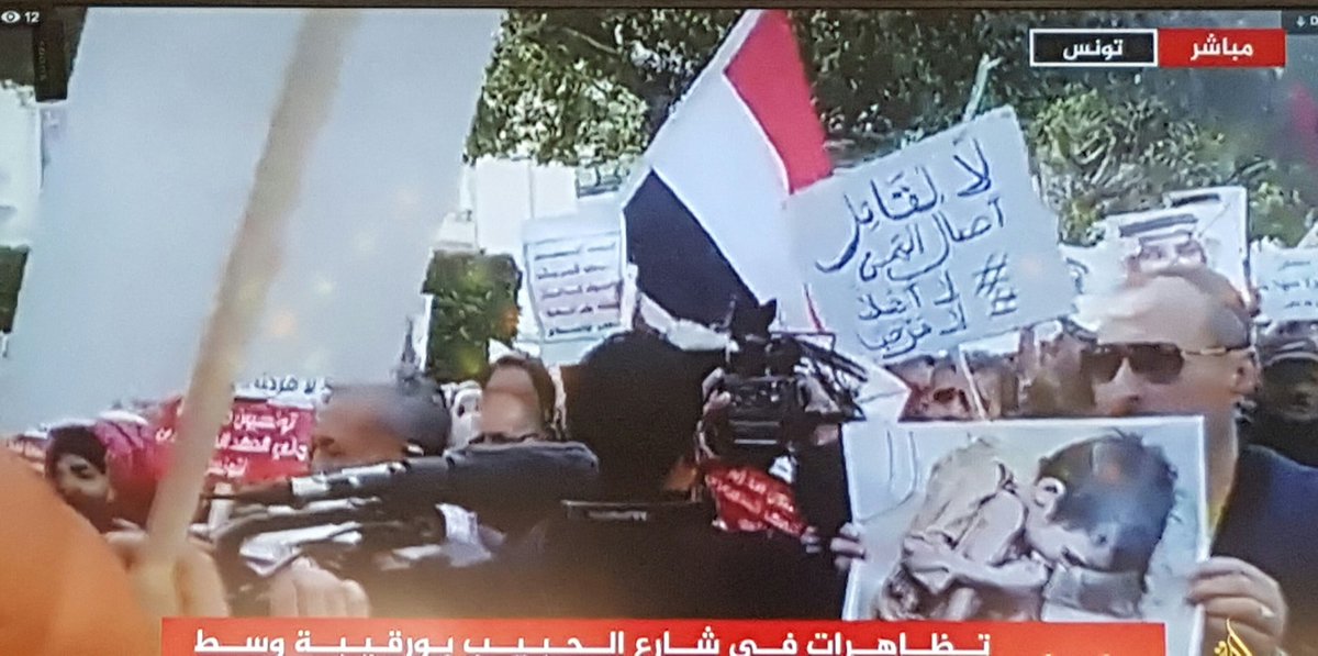 شاهــد.. شعـار أنصـار اللـه يرفعـه المتظاهـرون فـي #تونـس بوجـه إبـن سلمـان (صـور)