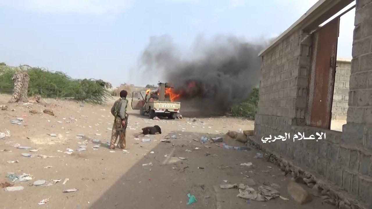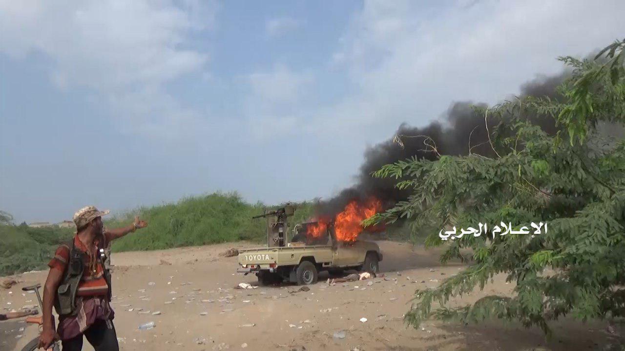 كما وثقت إحراق الجيش واللجان الشعبية عددا من الأطقم التابعة للمرتزقة واغتنامهم أسلحة متوسطة وذخائر خلفها مرتزقة العدوان في المواقع التي تمت السيطرة عليها.