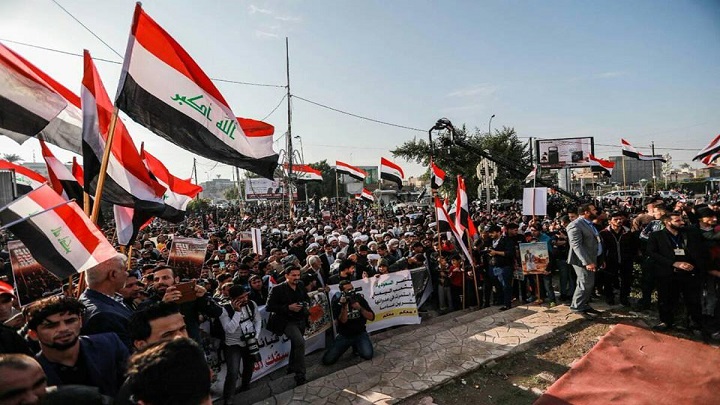 أقيمت في العاصمة العراقية بغداد اليوم الجمعة، وقفةٌ تضامنيةٌ مع الشعب اليمني استنكارًا لما يتعرض له من عدوان سعودي أمريكي غاشم على مدى أربعة أعوام.
