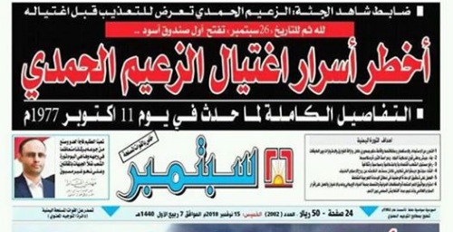 منذ شهرين تقريباً بدأت السلطات في صنعاء بفتح ملف اغتيال الرئيس الشهيد إبراهيم محمد الحمدي الذي اغتيل هو وشقيقه وعدد من قيادات الدولة في 11 أكتوبر 1977م وأعاد فتح التحقيق من جديد لكشف خفايا اغتيال الشهيد الرئيس إبراهيم الحمدي وشقيقه عبدالله الحمدي قائد قوات العمالقة وتفردت صحيفة “26 سبتمبر” ثاني أكبر الصحف الرسمية في اليمن بنشر تفاصيل نتائج التحقيقات التي تجريها السلطات بشأن اغتيال الحمدي وهي المرة الأولى منذ جريمة الاغتيال التي تكشف فيها وسيلة إعلام رسمية وبحجم صحيفة كـ”26 سبتمبر” هذا الكم من المعلومات والتفاصيل والحقائق الجديدة في هذه الجريمة التي مثلت جريمة اغتيال بلد بحاله.