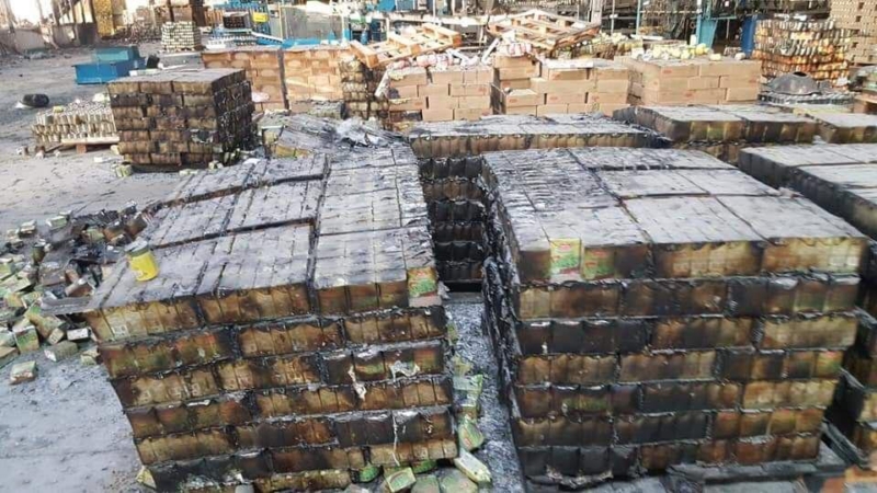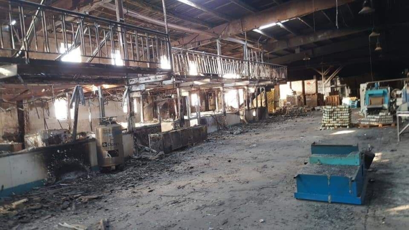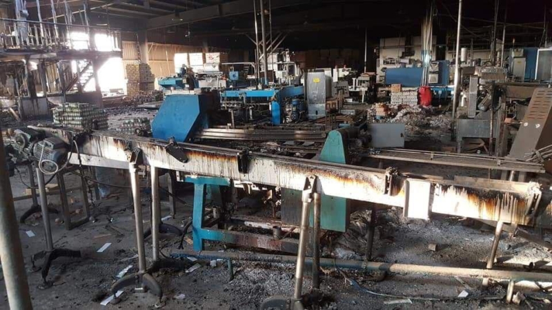 ويظهر من خلال الصور حجم الدمار الكبير والتلف والحريق الذي لحق المصانع ومعداتها الخامات التي قيد التصنيع، حيث تضرر المبنى بالكامل وأصيبت معظم الآلات بالتلف.