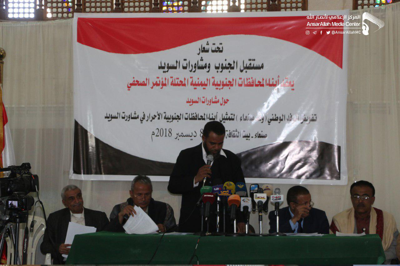مؤتمر صحفي لأبناء المحافظات الجنوبية حول مشاورات السويد + (صور)