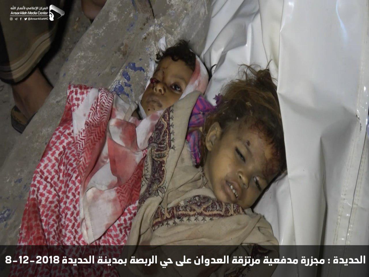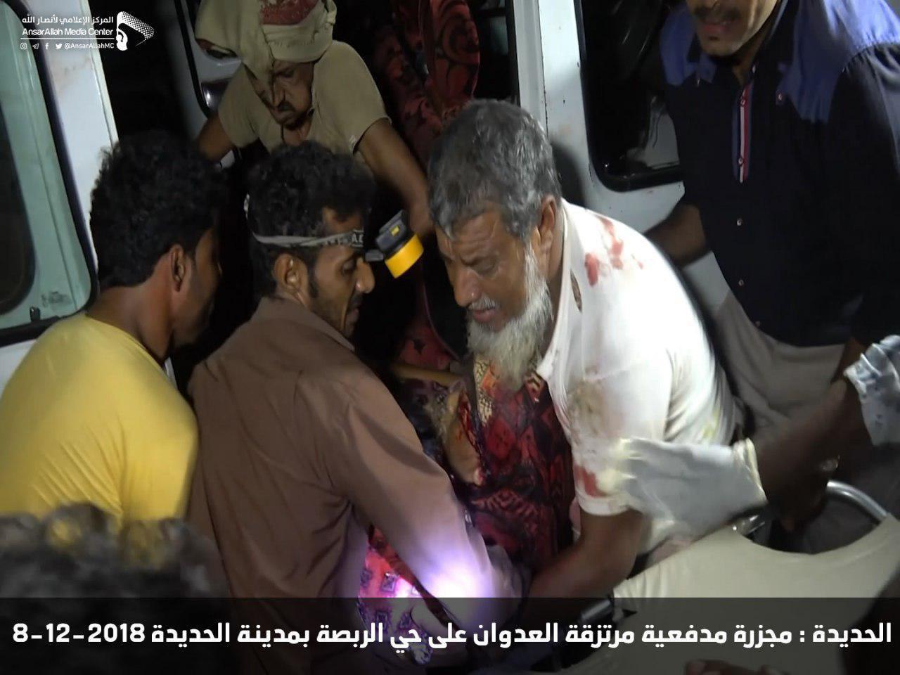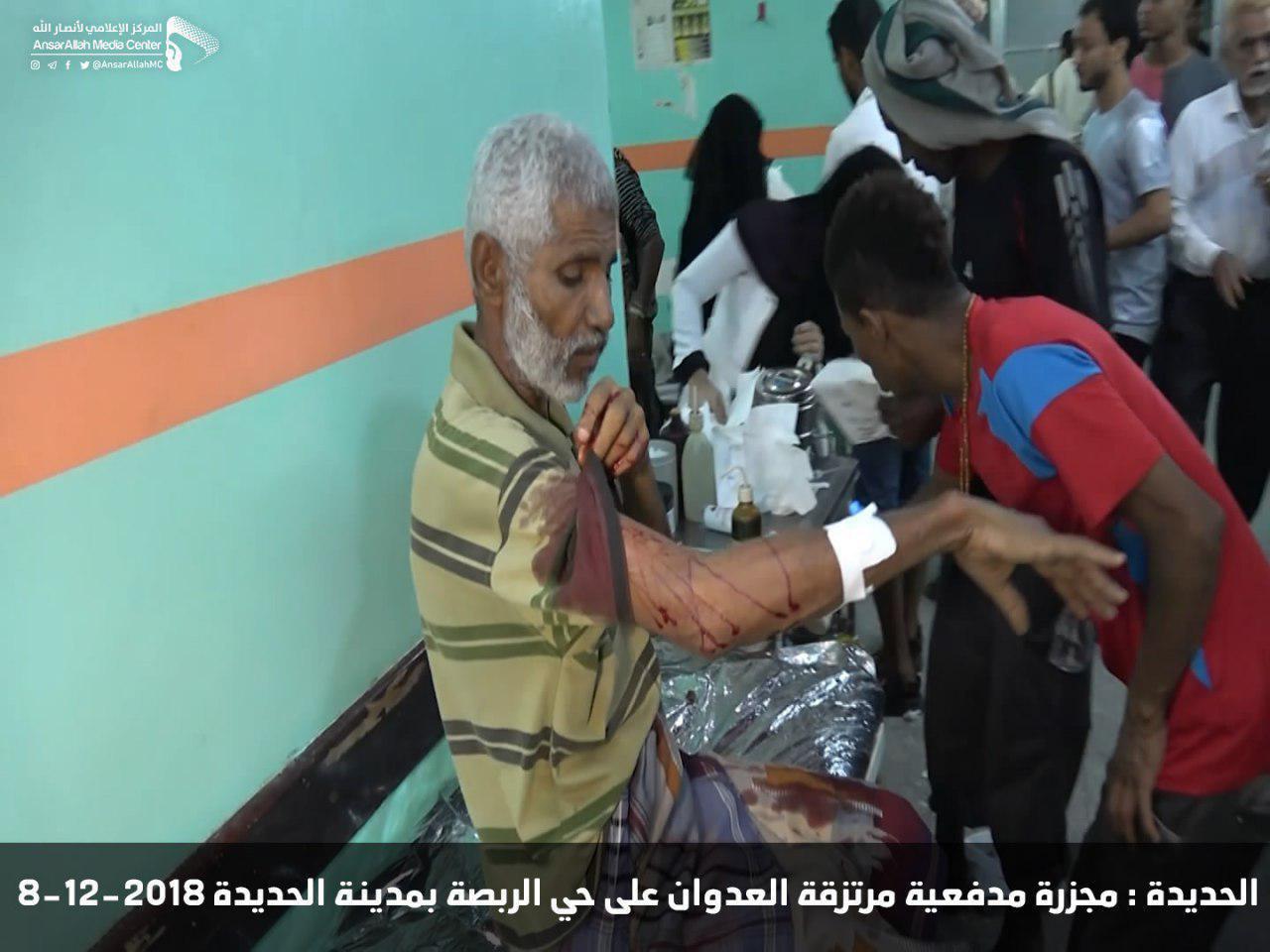 ارتكب مرتزقة العدوان السعودي الأمريكي، يوم السبت، مجزرة بشعة بحق المواطنين في مدينة الحديدة جراء استهداف دوار الربصة بعدد من قذائف المدفعية، سقط على إثرها 18 شهيداً وجريحاً معظمهم من الأطفال.