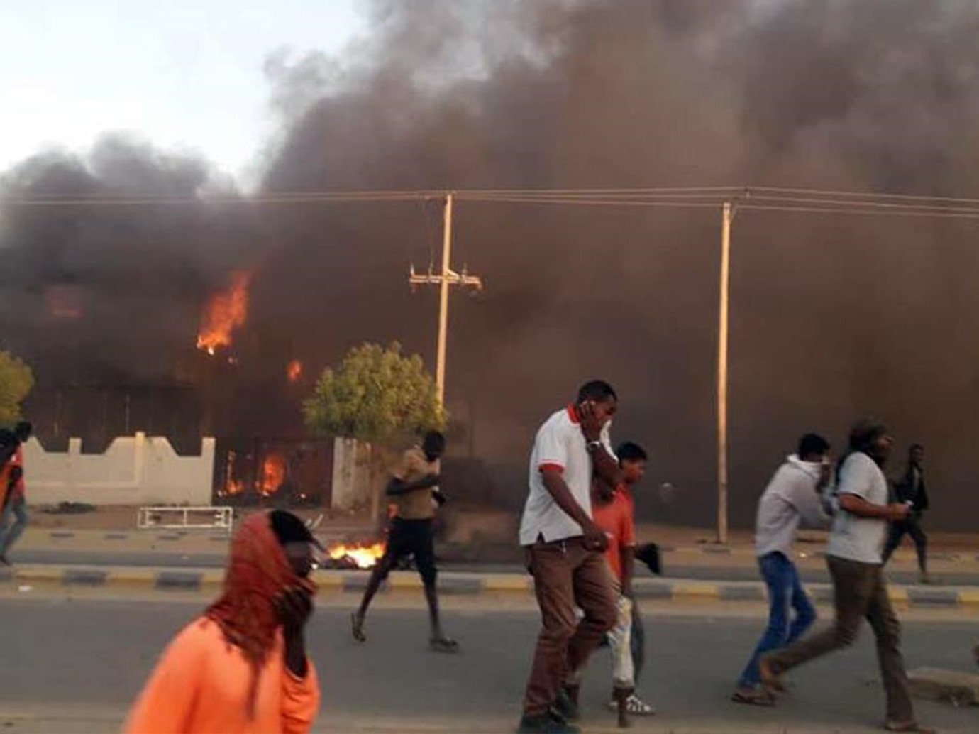 وأبلغ شهود عيان من ربك، أن المحتجين أحرقوا مقر المؤتمر الوطني (الحزب الحاكم)، والبوابة الجنوبية لمقر أمانة الحكومة.
