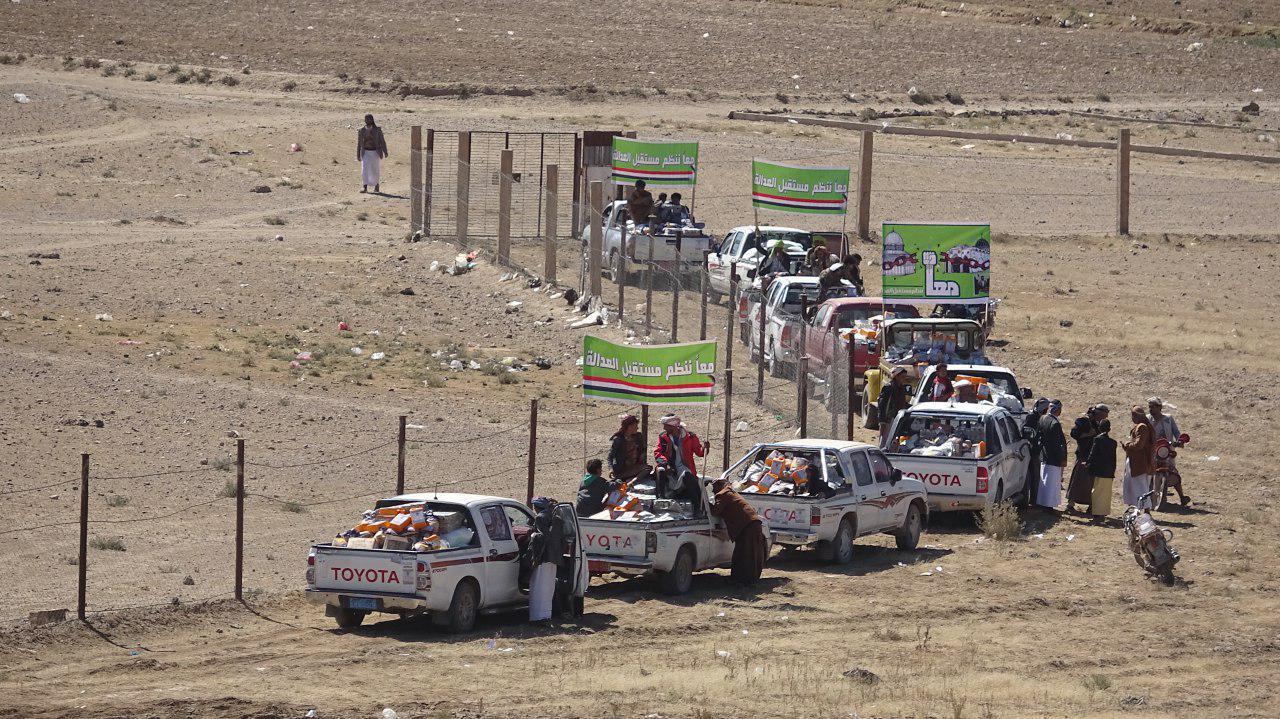 دشنت قافلة العدالة اليوم السبت، القافلة الغذائية الرابعة التي انطلقت من مديرية معبر بمحافظة ذمار لاستهداف أُسر المرابطين والمجاهدين في محافظة مأرب مديرية صرواح.