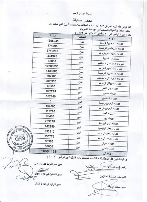 كشفت وثائق نشرها الصحفي الجنوبي، فتحي بن لزرق، عن فساد كبير في وقود محطات وتوليد الكهرباء في عدن.
