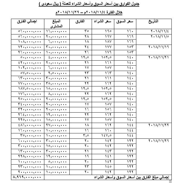 وأُرفقت المذكرة المرفوعة لرئاسة حكومة هادي بـجدول الفوارق بين أسعار السوق وأسعار الشراء للعملة بالريال السعودي.