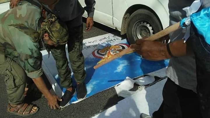 وأظهرت صور -حصل عليها متابعات- تفاخر أتباع الإمارات بالهجوم على الفعالية وتمزيق اللافتات والأعلام وصور عبدربه منصور هادي.