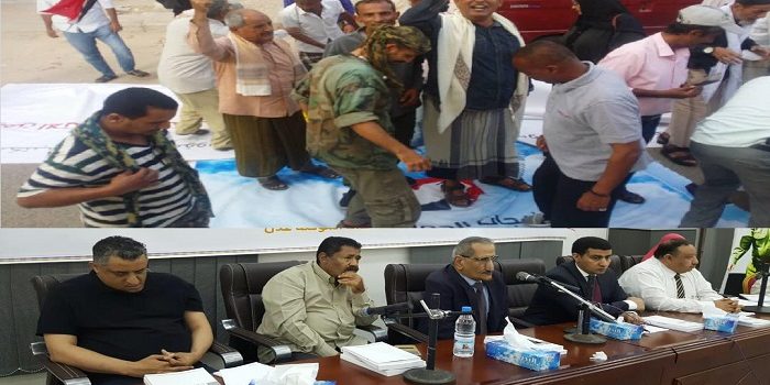 مسلحون تابعون للإمارات يهاجمون فعالية حكومية في عدن ويمزقون صور هادي .. (شاهد)